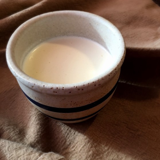 3. Put the sour cream in a bowl. Gently whisk in the warm cream, a little at a time, until completely combined and smooth. Taste for sweetness, and add a little more sugar if needed.