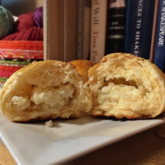 These are a pretty simple yeast dough, and you can make the filling ahead of time, so if you wanted to throw them together for a snack, or a weeknight dinner, that would be very doable. We ended up making two batches, one with a curried chicken filling, and one with a potato and cheese filling.